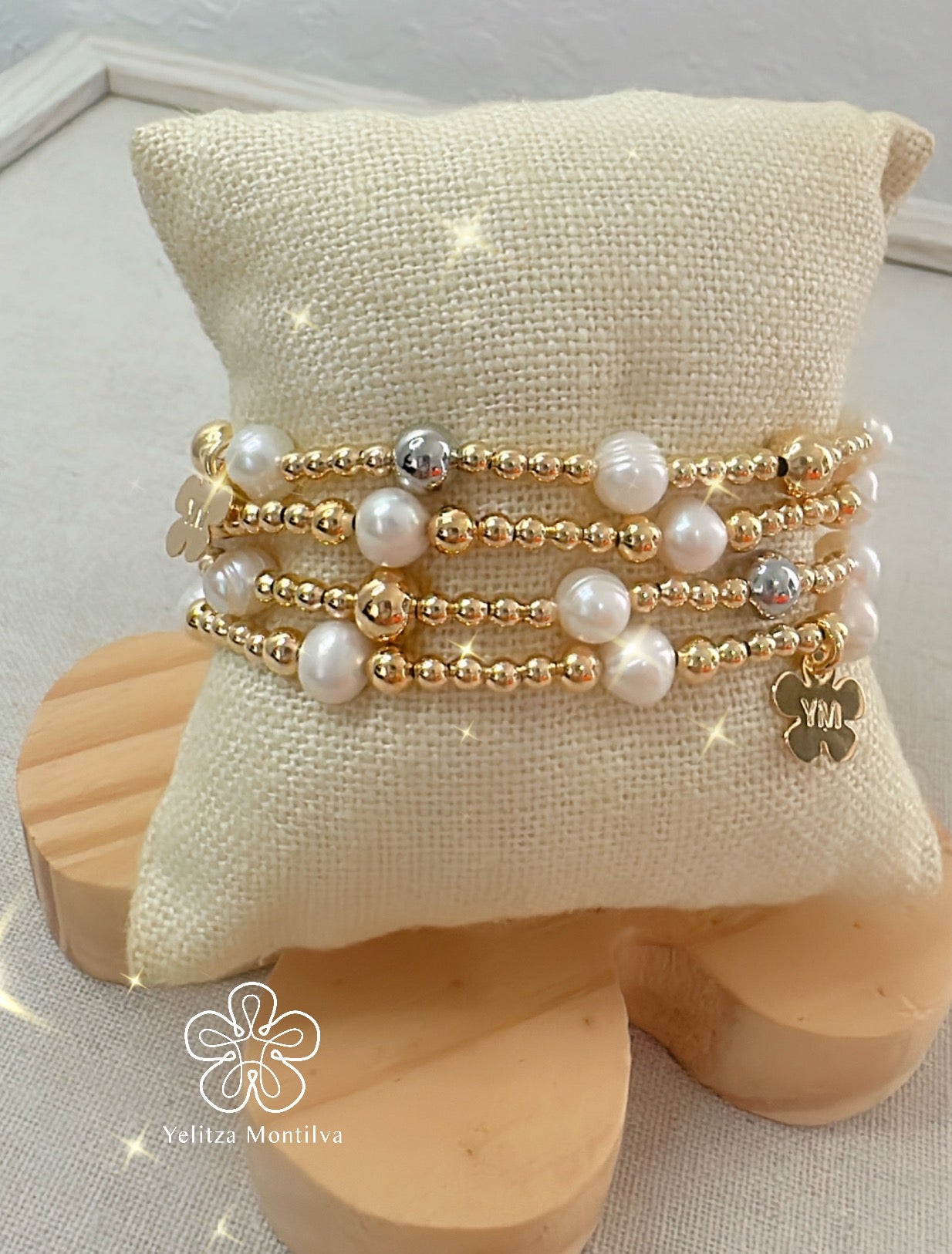 Beautiful bracelet with pearl and gold-plated balls.